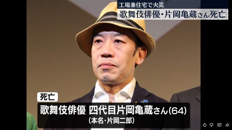 根據《三立娛樂星聞》報導,24日凌晨約4點左右,有民眾報案指出一棟3層樓建築發生火警,該建築物一樓作為甜品製作工坊使用,二、三樓則是住宅區域。儘管消防人員在2小時內成功將火勢控制撲滅,但這場無情大火仍造成1人死亡、1人受傷的悲劇。經過身分確認,死者正是64歲的歌舞伎演員片岡龜藏,雖然緊急送往醫院急救,最終仍回天乏術。