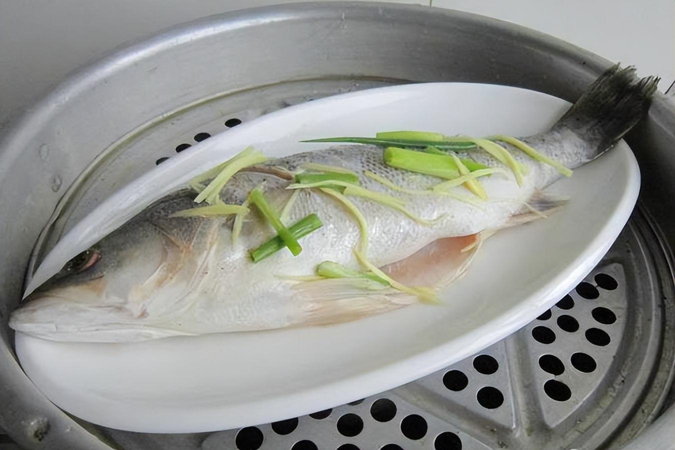 2、準備蒸鍋:在蒸鍋中加入清水,燒開後放入蒸架,在蒸架上鋪上一層蔥段和薑絲,放上腌制好的鱸魚。注意蒸鍋的水量要適中,以免燒乾。同時,鱸魚不宜與蔥姜等香料直接接觸,可以用蒸架隔開,這樣可以讓鱸魚更加鮮美,另外,蒸鍋要提前預熱,待水燒開后再放入鱸魚,這樣可以避免蒸出來的鱸魚肉質變硬,現在將蒸鍋蓋好,大火蒸10-12分鐘,待鱸魚變白即可。