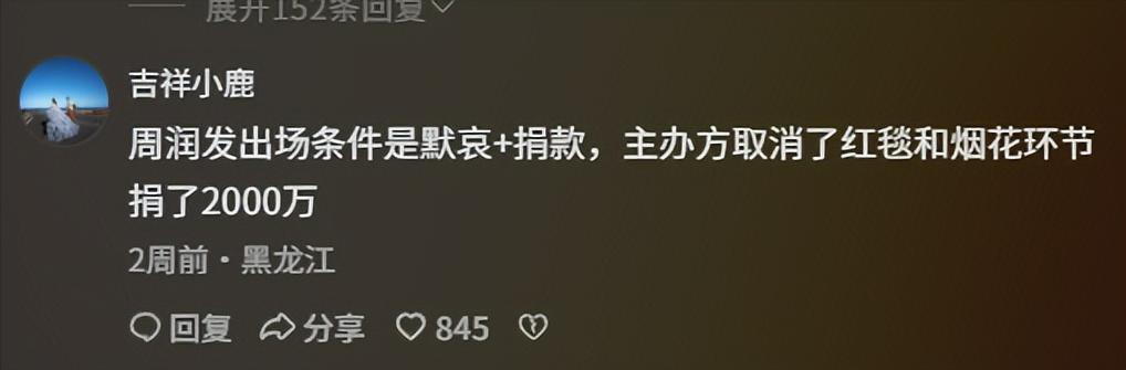 後來有知情網友透露周潤發出席MANA頒獎典禮的條件就是允許全場默哀,
