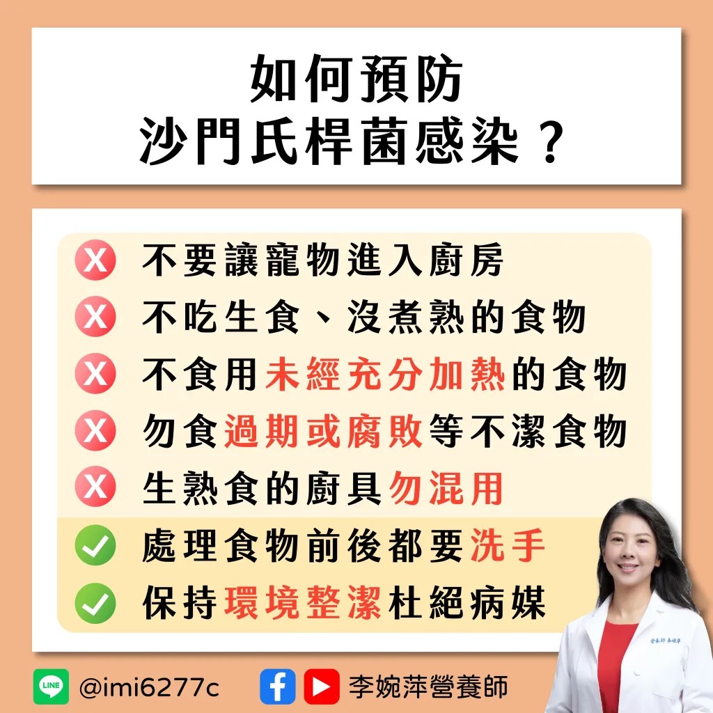 雖然沙門氏桿菌聽起來很可怕,但它其實有個致命弱點就是「不耐熱」。李婉萍指出,該菌在60度加熱20分鐘,或是煮沸5分鐘就能被殺滅。因此預防感染的關鍵,就是確保料理肉類和家禽時徹底煮熟,讓食物中心溫度達70度以上,同時拒絕生食例如喝生蛋液。