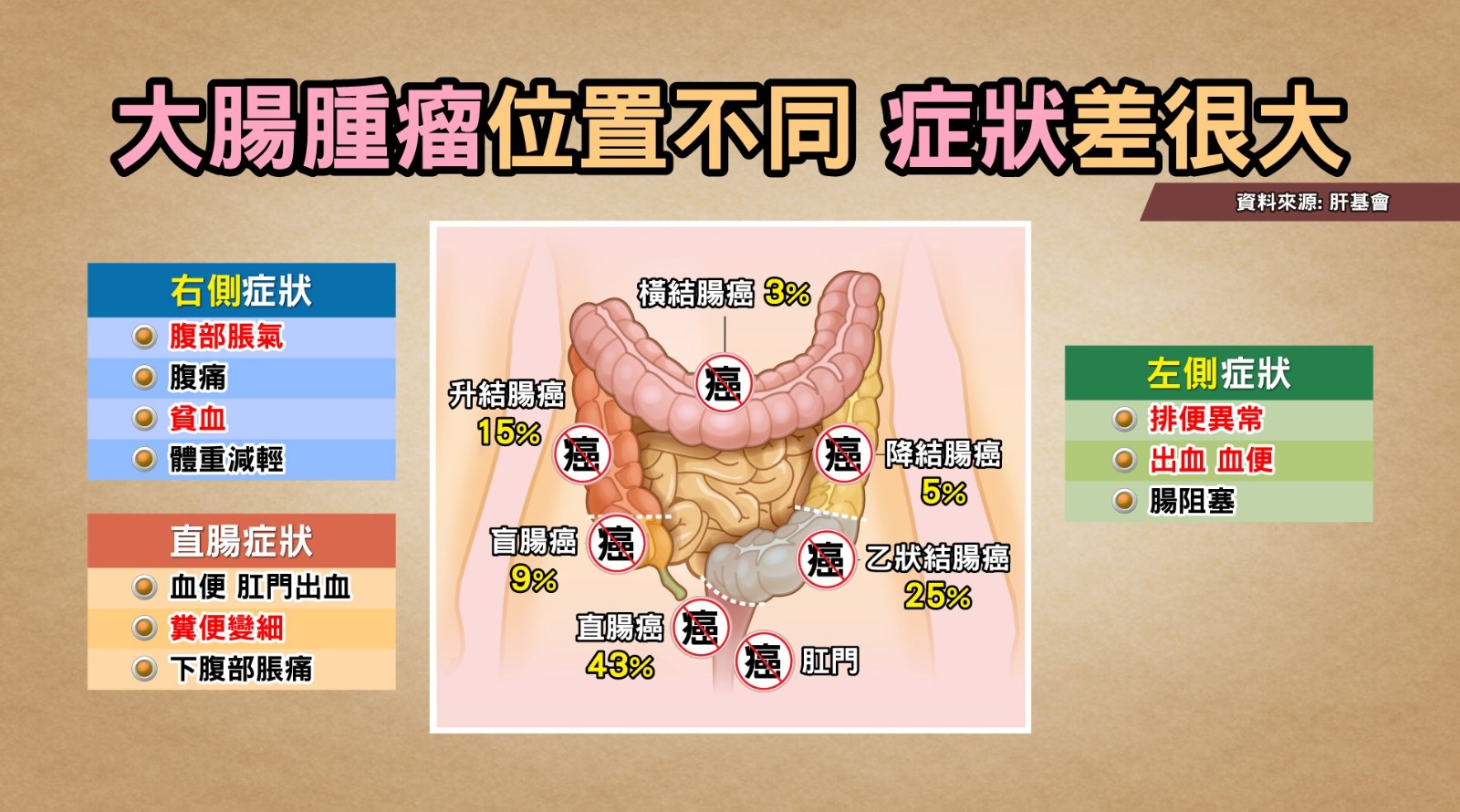 許秉毅進一步說明,大腸癌大多發生在50歲過後,有95%是源自於大腸息肉,建議在45歲至50歲時做「人生的第一次大腸鏡」,這時若檢查出息肉,發現後立刻切除並做定期追蹤,就有很大機率可以避免在50歲後得到大腸癌。話鋒一轉,國健署也建議可以先定期接受糞便潛血篩檢,一有異常要儘速接受大腸鏡檢查,才能及早揪出大腸癌,早期大腸癌的存活率高達9成以上!