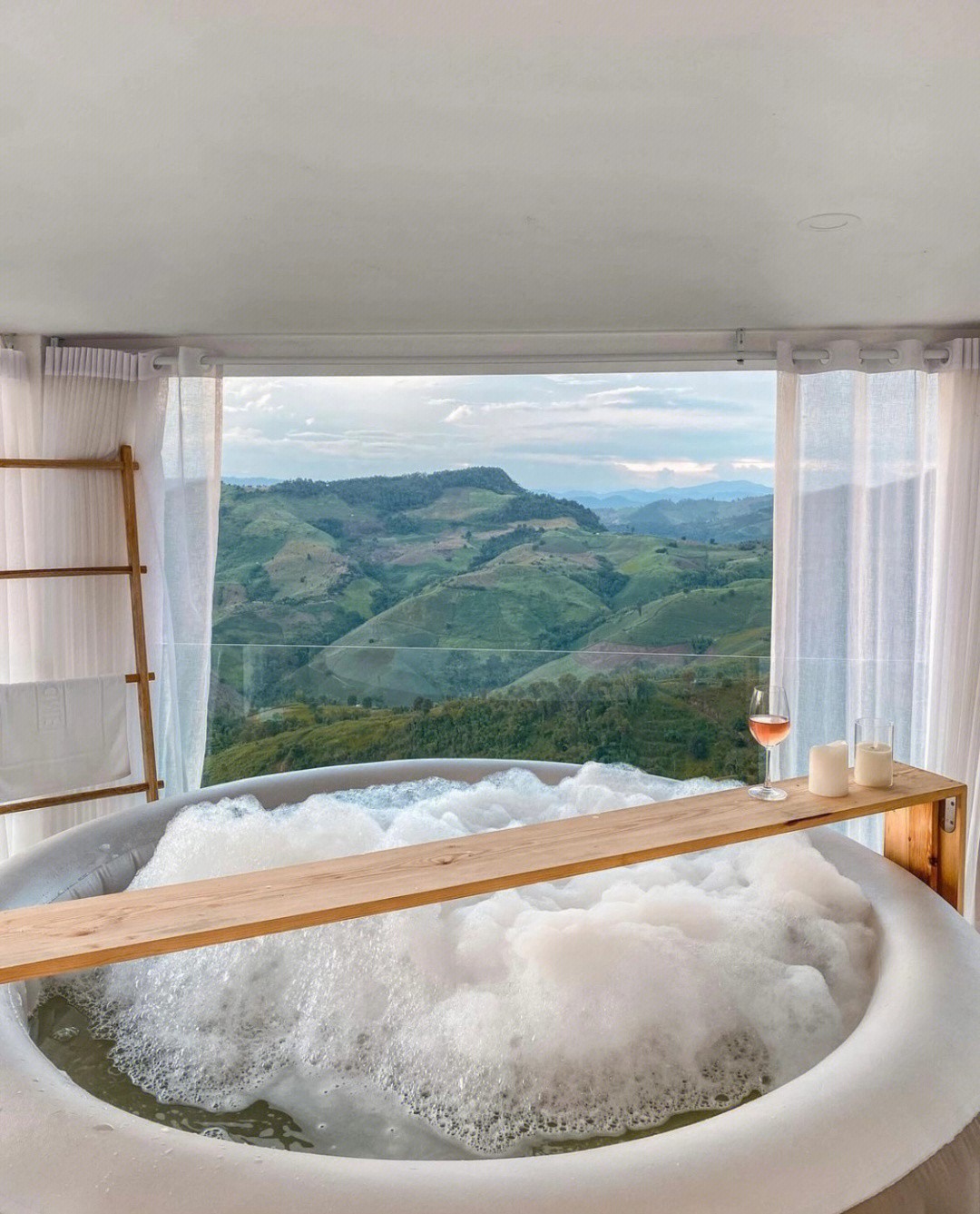 雲海上的泡泡浴!圓形大浴缸「賞180度無敵山景」超療癒 走到陽台「欣賞山霧圍繞」還有露天床鋪❤️