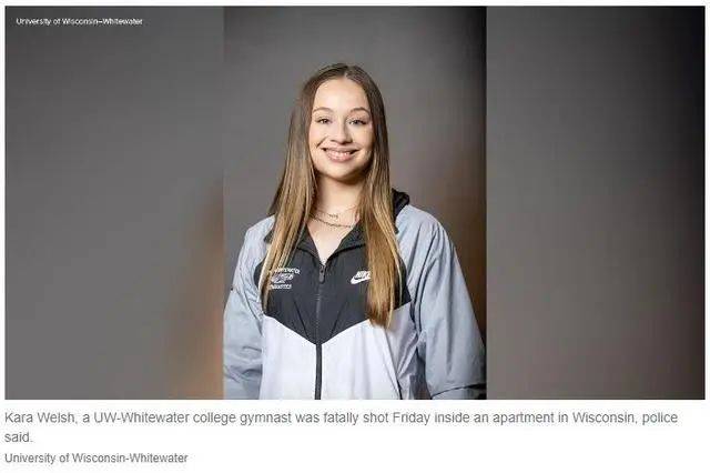 據美國全國廣播公司芝加哥分台(NBC Chicago)8月31日報導,警方表示,當地時間8月30日深夜,威斯康辛大學白水分校(University of Wisconsin-Whitewater)、一名大學生在宿舍內遭槍擊身亡,死者是年僅21歲的凱拉・韋爾許,她來自芝加哥,生前是一名體操運動員,曾在跳馬項目拿過個人的全國冠軍榮譽。