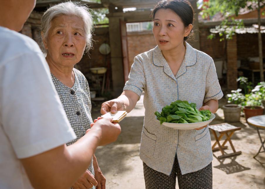 「看我自家菜園子裡種的青菜,長得好,給你送點過來嘗嘗鮮。」王嬸笑著說。