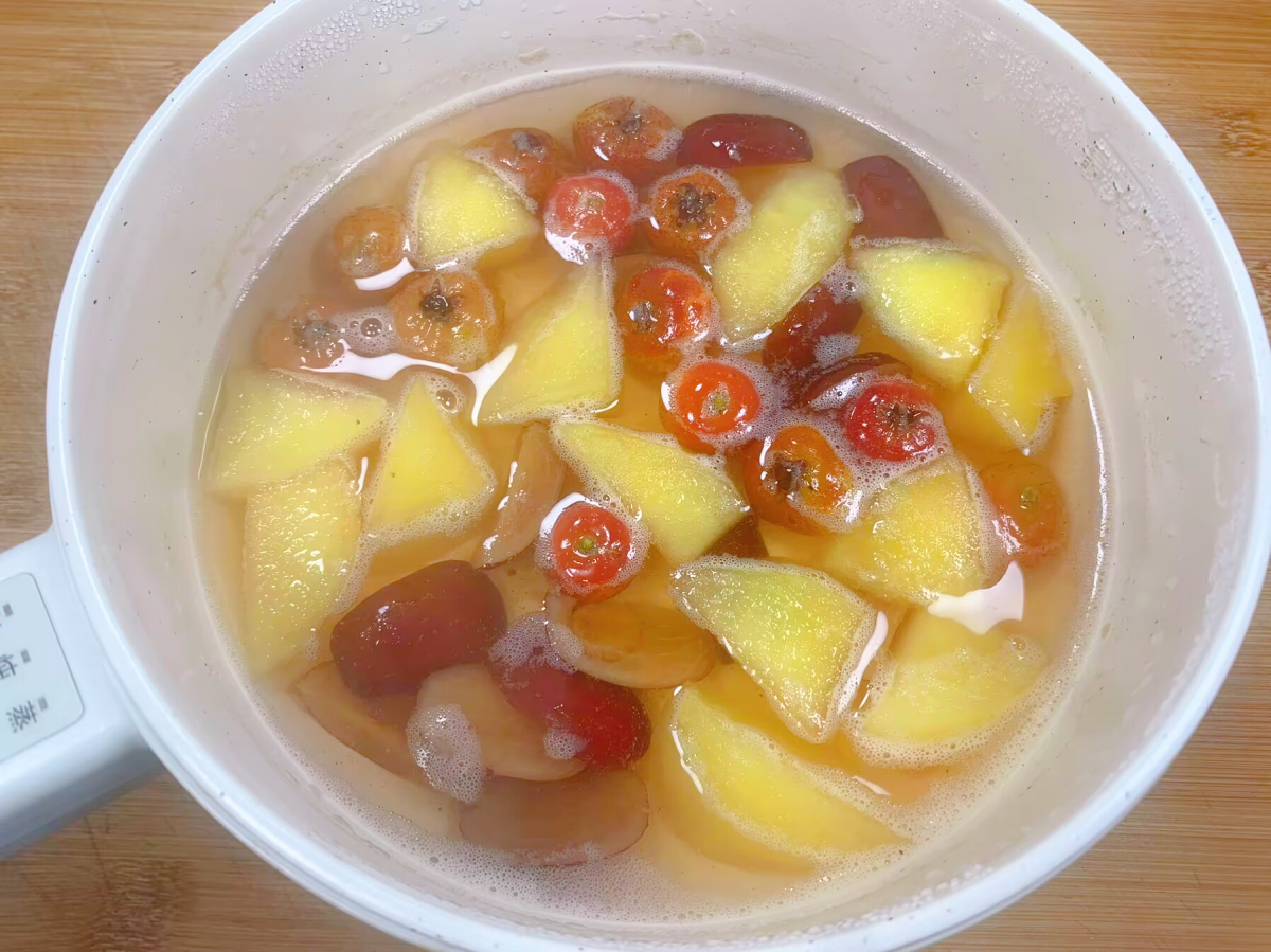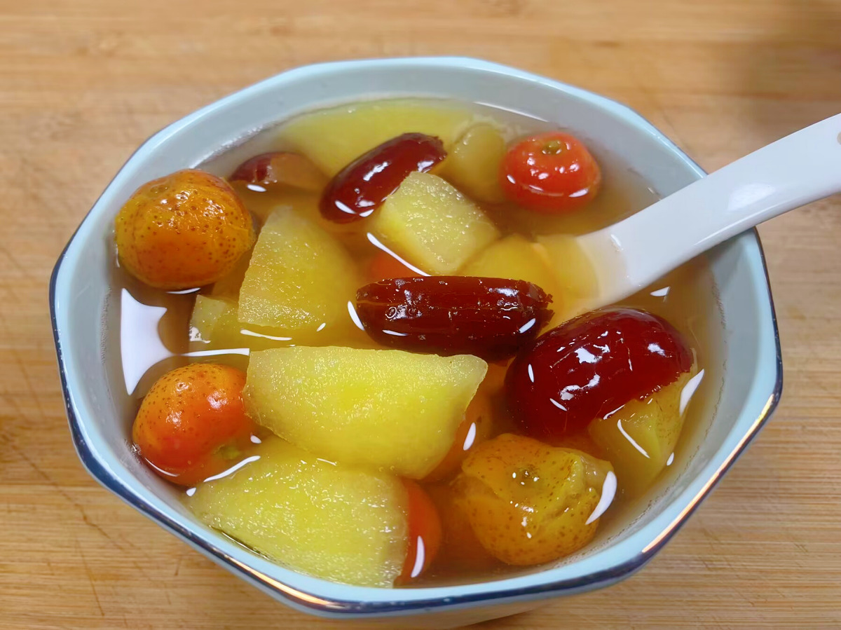 2、冰糖切記不要放太多,口感太甜的話,對嗓子不好,容易出現咳嗽的癥狀。