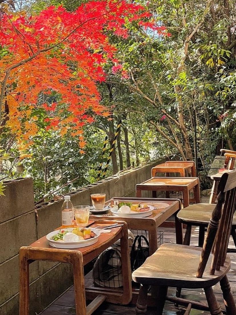 大多數客人都會想坐在戶外用餐區,因為這樣可以更加零距離接觸大自然!享受陽光灑落在身上的感覺,還有落葉飄落的模樣~