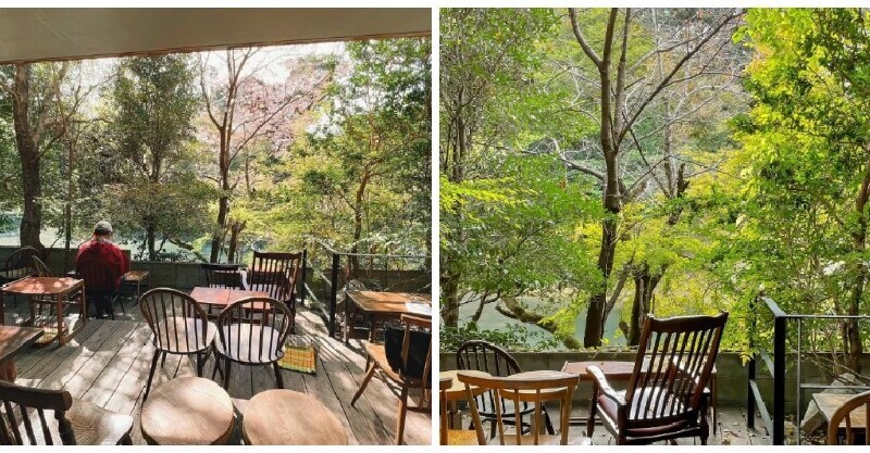 這間位於京都「vermilioncafe」咖啡廳,身處在大自然環境中,四周圍繞著翠綠清幽的森林,還有一片湛藍湖水,秋天時還可以邊賞紅葉邊喝咖啡,超級浪漫~