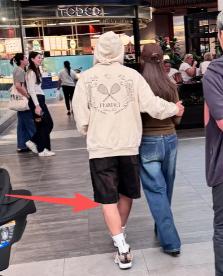只見他一手摟著老婆,走路時步伐緩慢腰背有點駝,雙腿還是呈現出羅圈腿的狀態,和舞台上活力滿滿的樣子反差大。