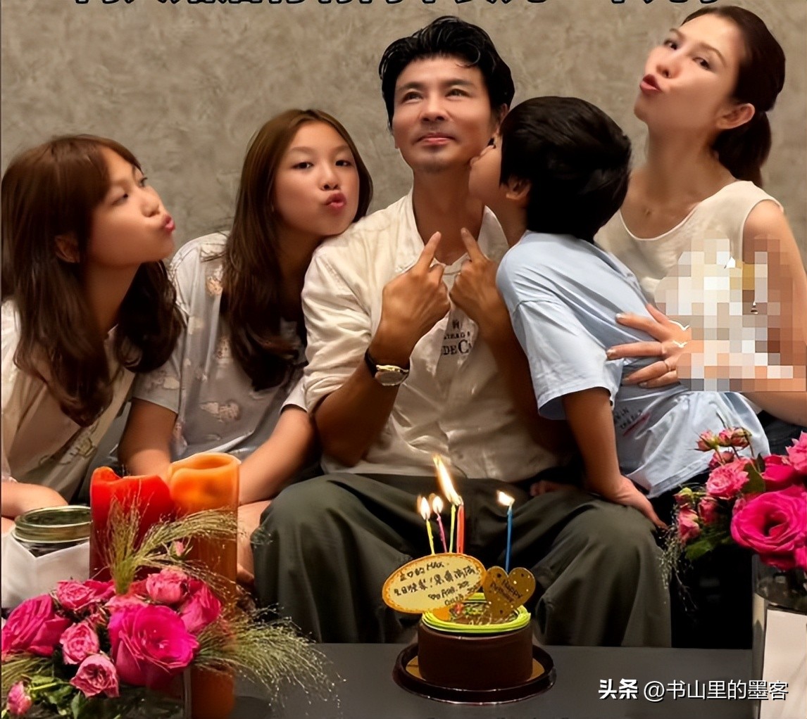 今年5月份的時候,張晉就曬出了自己51歲的生日照,畫面中的一家五口為他慶生,蔡少芬也在旁邊貼臉摟抱著張晉,真的是「人生贏家」差不多。