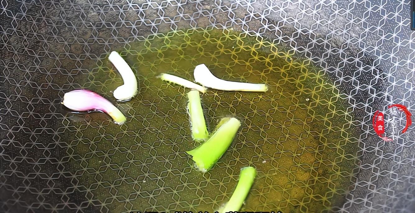 6,接著淋入一些香油,潑好的辣子油,再放入蔥花和香菜桿,這個時候要開火,把蔥花和香菜的香味炒出來,出鍋前撒上一些熟芝麻就可以裝盤了。