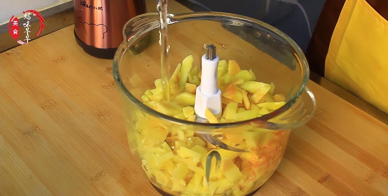 1、準備450克左右的生薑,我們先將生薑去掉皮,然後清洗乾淨。洗凈的生薑切成小塊,然後放入料理機裡打碎,盡量打得碎一些,這樣比較好熬制,而且口感比較好。