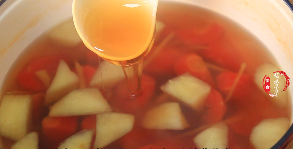 6、時間到了後,我們把湯稍微放涼一些,加入加入適量的蜂蜜,因高溫放入蜂蜜後,會破壞它的營養成分,再加入一小勺白醋,攪拌均勻之後,就可以享用了。