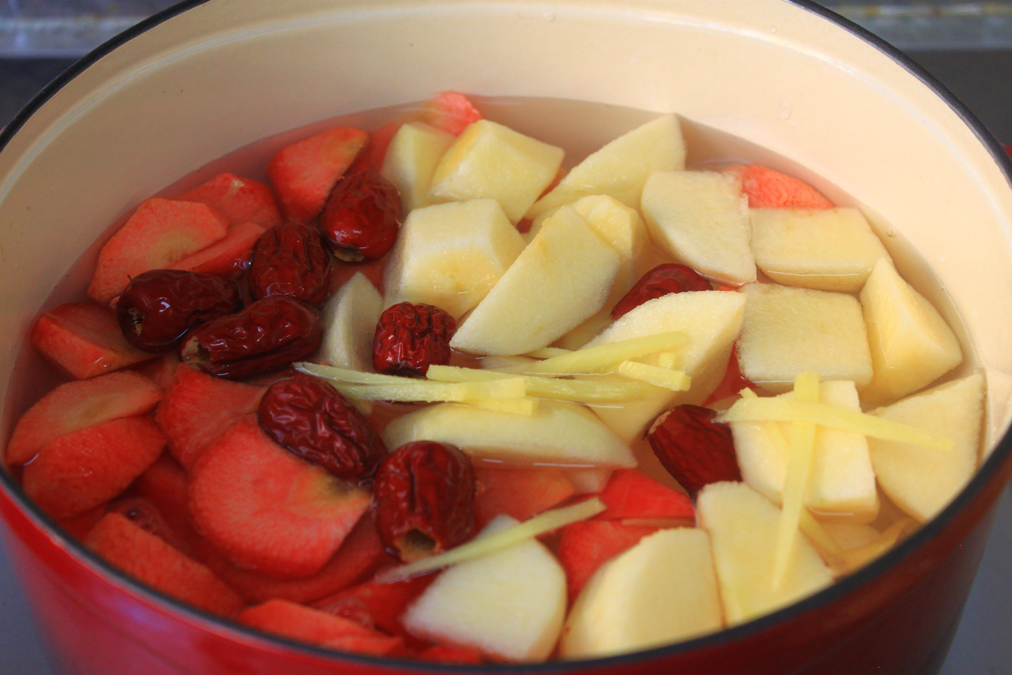 5、水開之後加入少許紅糖,也可以不加,加入紅糖主要是為了讓湯的顏色看起來更加漂亮一些。然後轉中小火煮上20分鐘即可。
