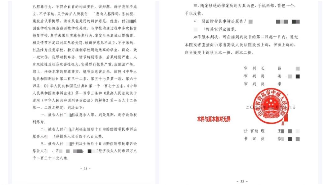 該案一審法官認為,嫌犯在事發後並未認罪懺悔,關於他的相關辯護意見、情節皆不予採納,判付男死刑,並需賠償受害家屬4萬8000元人民幣(約新台幣20萬元)。他聽聞後竟當庭要求上訴,堅持不會賠償。這讓葛先生氣憤地說,「他依然是不認罪悔罪,態度傲慢。距離上次開庭見他,感覺他還長胖了些。從案發到現在,他們沒有一個人來給我們道過歉」。