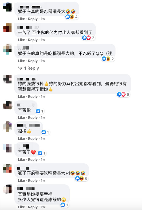 這篇貼文曝光後,立刻就引起了網友們熱議,紛紛留言大讚原PO的婆婆,是個有遠見的人,「這才是聰明的婆婆,一句話讓你死心塌地十三年」、「婆婆領航,妳直航,誰都不吃虧,互惠」、「說明婆婆很會做人,有鼓勵就是前進的動力」、「我也好希望從婆婆口中聽到讚美的話」、「有時候根本不需要別人回報,只要一句稱讚,就會覺得一切都值了」。