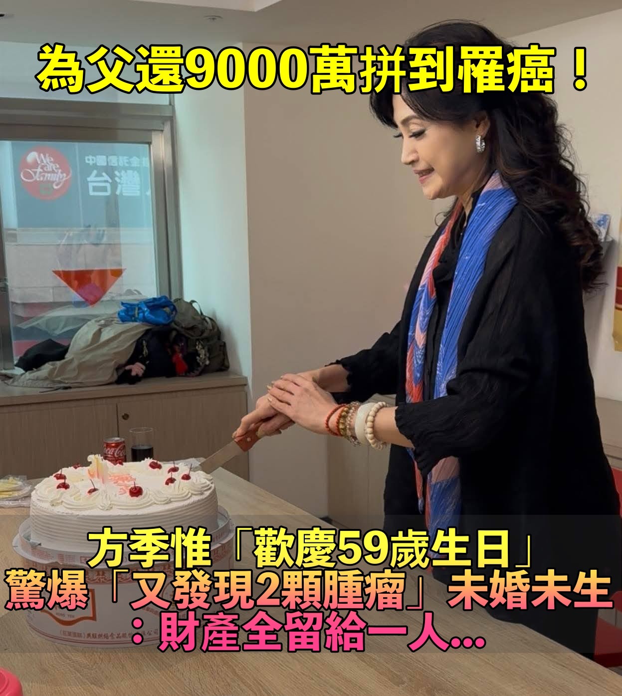 昔為父還9000萬債!方季惟罹癌重生「歡慶59歲生日」 不婚不生「發現2顆腫瘤」笑喊:看淡一切