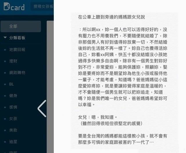 這是臺灣一位母親送給女兒的一段話,在網上引起無數網友的共鳴。