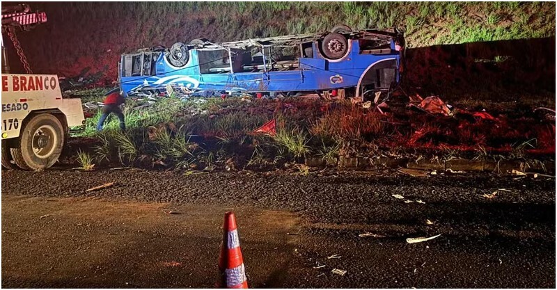 巴西聖保羅州日前傳出嚴重交通事故,一輛載滿乘客的巴士行經跨巴西公路(Transbrasiliana Highway)時,疑似因為輪胎突然爆裂,導致駕駛無法控制車輛,整台巴士偏離道路後翻覆,釀成至少6人喪命、46人輕重傷的悲劇,現場畫面相當慘烈。
