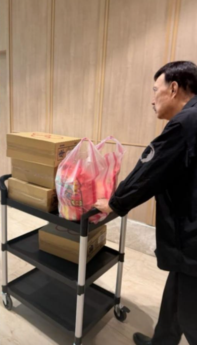 從拼貼的照片中可以看到,第一張是塔位外的海景,其他三張則是余天夫婦在塔位前的場景。照片中,余天推著裝載供品的推車,朝著女兒的塔位前進,雖非動態,卻可以看出他腳步沈重,面部莊嚴肅穆,並在抵達後雙手緊握,惆悵之心溢出螢幕之外;而李亞萍則在書本造型的塔位前,彎腰對著女兒說話,2老的一舉一動雖未述說細節,但讓許多人為之鼻酸。