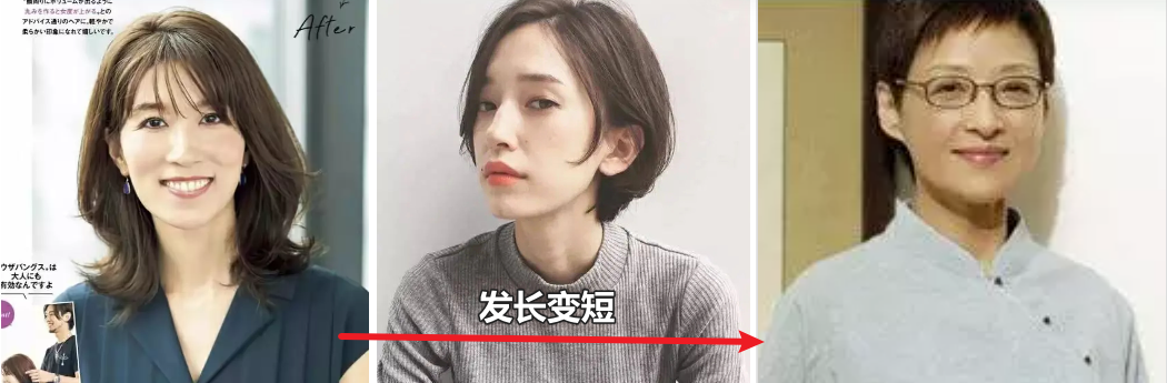 不得不承認,經歷過歲月洗禮的中年女性,臉部已經沒有年輕時的少女感,皮膚更為黯淡,膚色也會偏黃一點,黑長直就過於呆板沒有精神了,沒有女人。尤其是這種完全露額、貼頭皮的黑長直,還容易暴露髮際線。