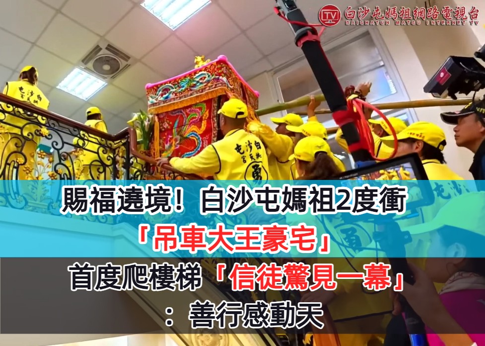 賜福遶境!白沙屯媽祖2度衝「吊車大王豪宅」 首度爬樓梯「信徒驚見一幕」:善行感動天