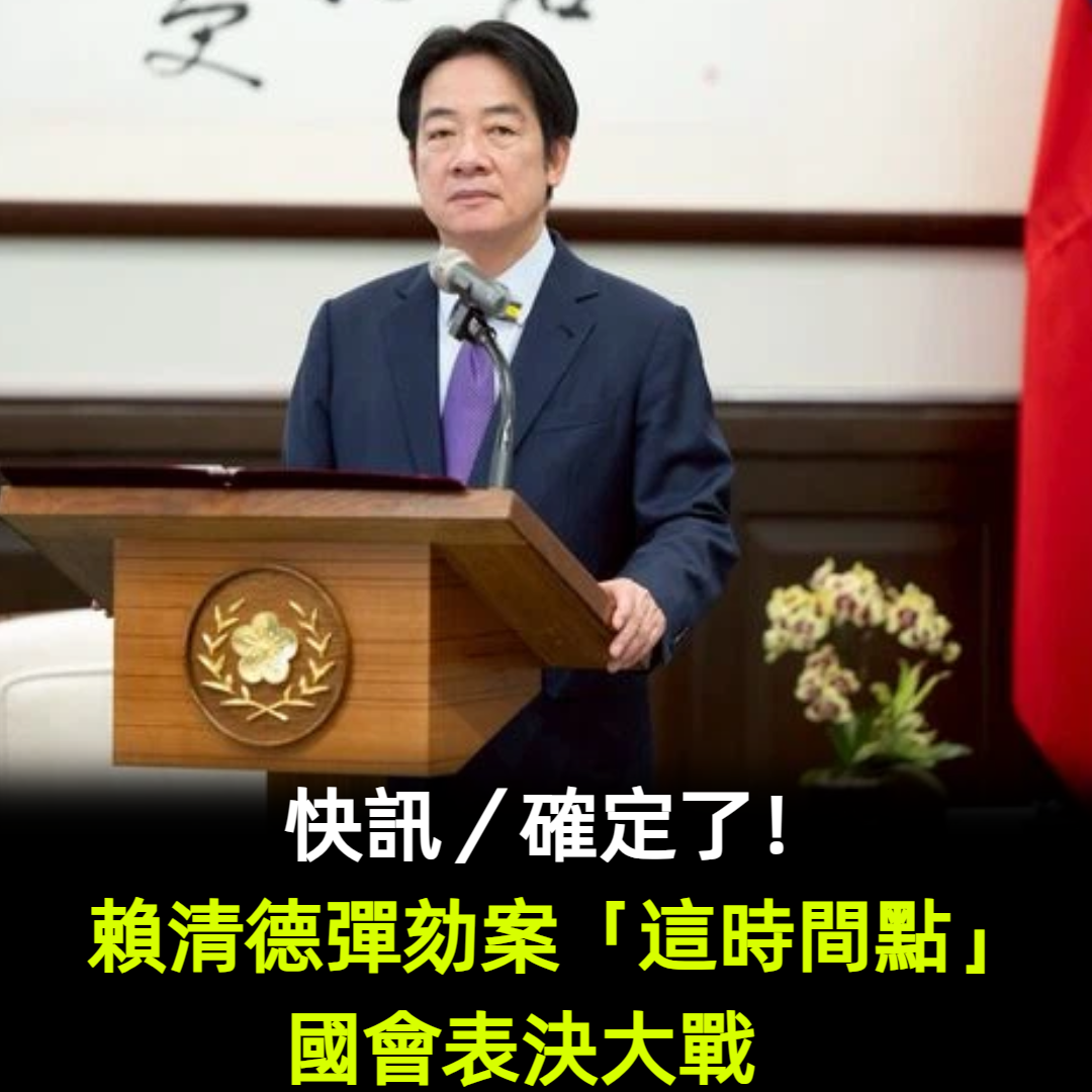 快訊/確定了!賴清德彈劾案「這時間點」國會表決大戰 要76位立委同意