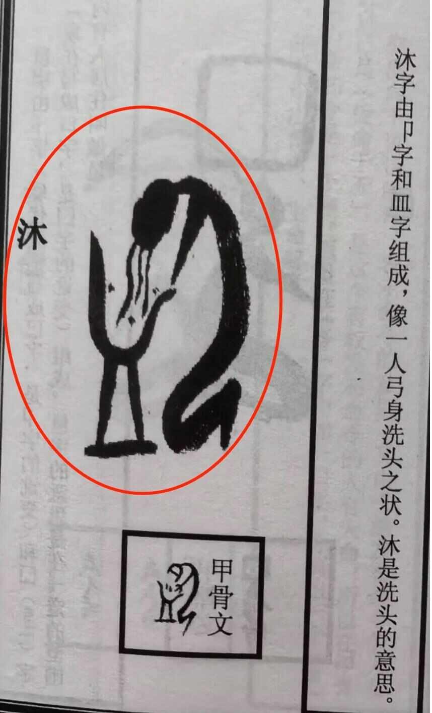 根據《上游新聞》報導,大批網友認為該字形看起來就像一個人彎下身子正在洗頭髮,也有人推測圖中描繪的是某人蹲在洗手台前嘔吐的模樣。網路上流傳的答案宣稱此字為「沐」,並解釋:「呈現一人躬身洗髮之姿態。沐即洗頭之意」。然而安陽師範學院甲骨文資訊處理教育部重點實驗室的劉永革主任出面澄清,被紅色圈選的圖案根本不屬於甲骨文,更非「沐」字。