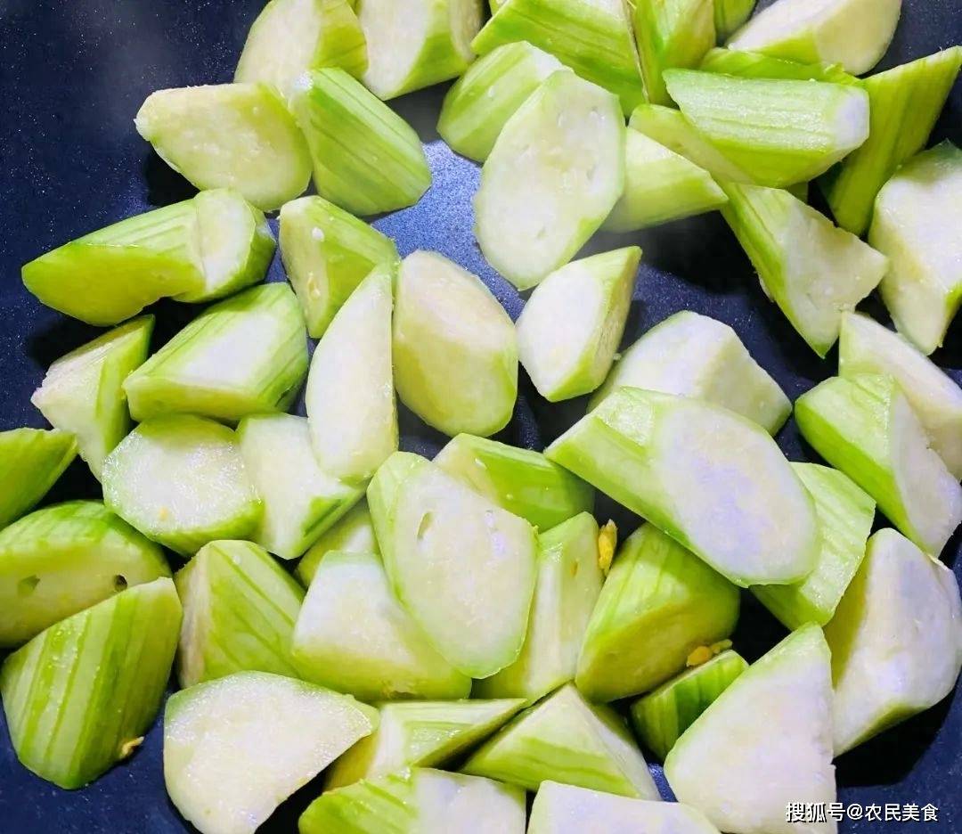 第三步,往鍋里加一點底油,放入蔥薑末爆炒香。然後放入絲瓜,大概炒制2分鐘左右。等把絲瓜炒到變軟後,加入清水沒過絲瓜。