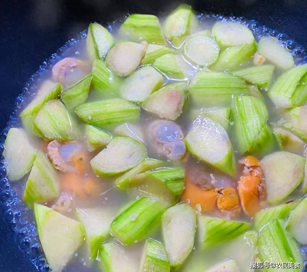 第四步,放入扇貝肉,食鹽,雞精,大火燒開。
