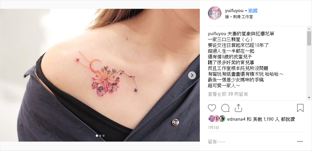 看完超夢幻刺青圖後,不少網友也萌起了刺青念頭:「跪求刺青師」、「好美哦,我也心動了」、「很美的獨一無二」,這名高雄楠梓的刺青師也在ig分享這個有趣的經驗,如果大家有興趣的話可以追蹤刺青師的ig獲得更多資訊唷!