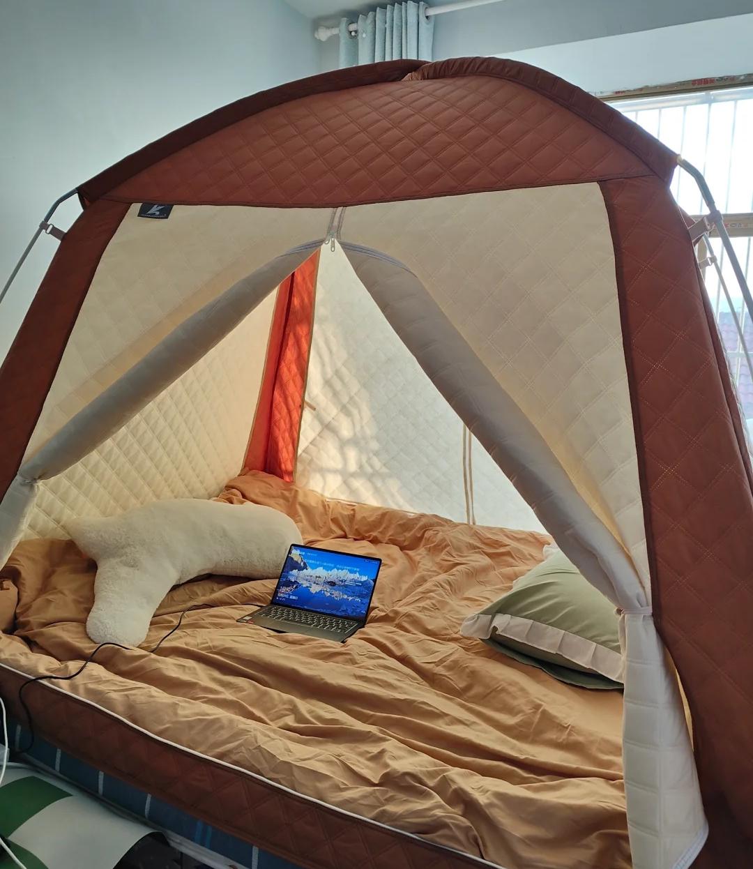 床上厚帳篷的安裝非常的簡單,夏天還能換成蚊帳,性價比超高,保暖性不錯,受到了很多的租房黨喜愛。
