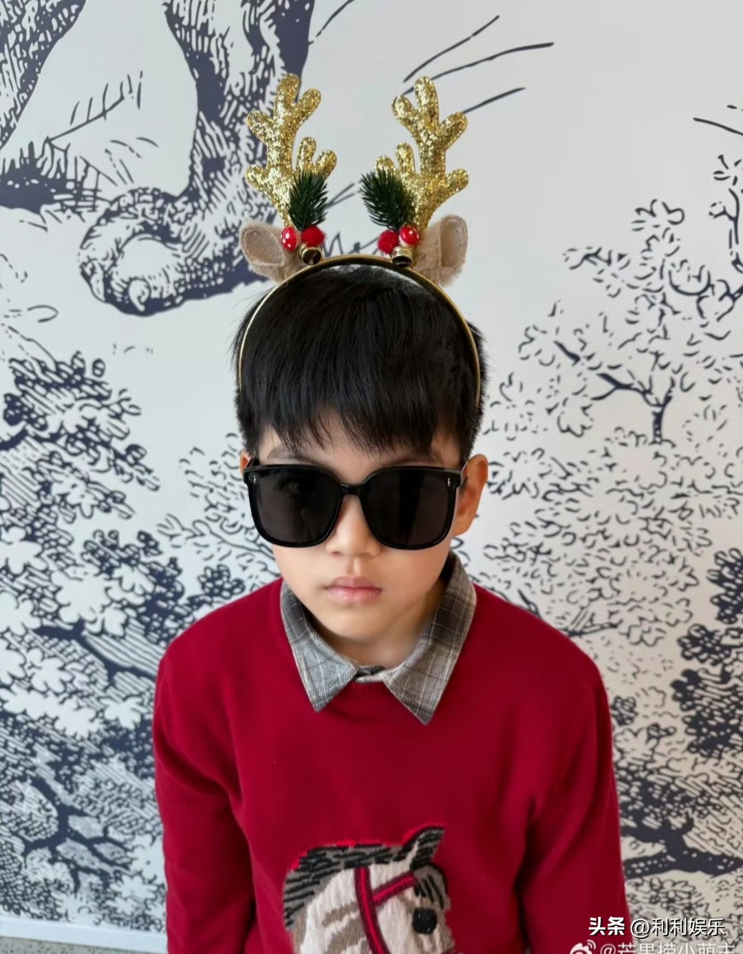 小星星的顏值堪稱完美複製父母的優點:既有父親陳曉的俊朗眉眼,又有母親陳妍希的甜美臉頰。他身穿金色鹿角發箍搭配紅毛衣的聖誕造型,既有時尚感又充滿童真。更令人驚嘆的是他的成長速度,身高已經接近媽媽的肩頭,遠超同齡孩子的平均水平。
