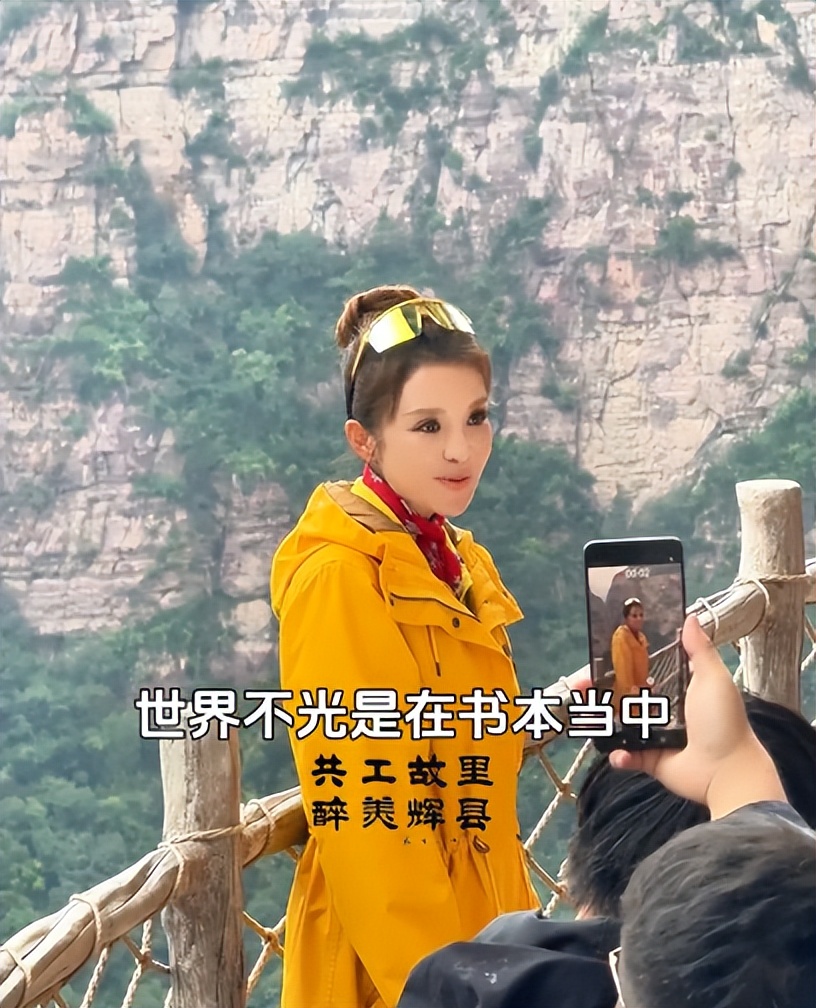 她還在景區的棧道上出鏡錄製影片,說道:「世界不應該只在書本裡,更應該在自己的腳下」。