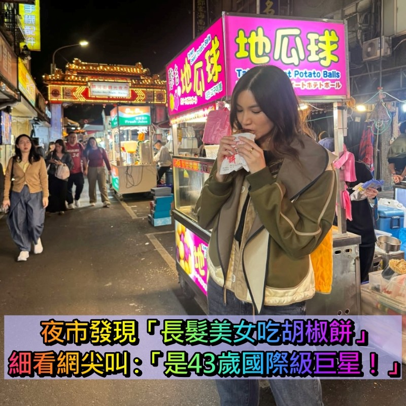 眼前的人好眼熟!夜市發現「長髮美女吃胡椒餅」 細看網尖叫 「是43歲國際級巨星」