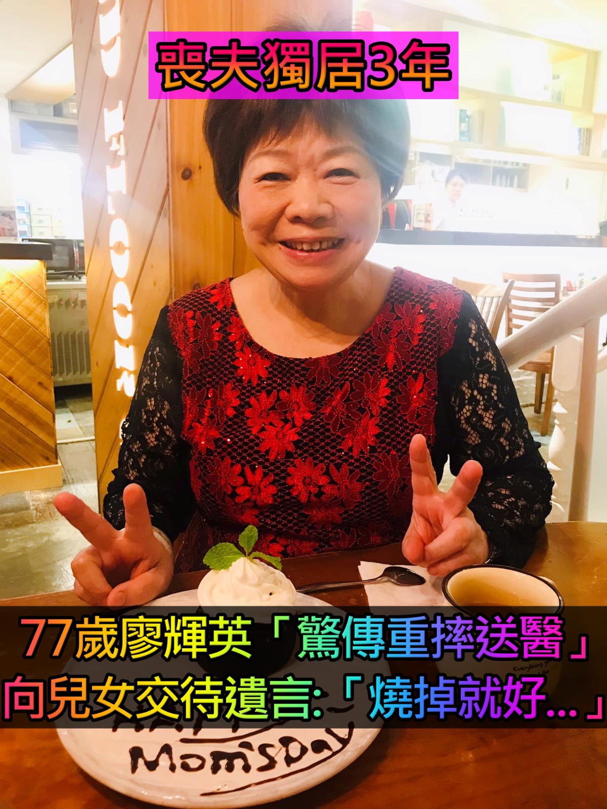 最後,先生是在廖輝英昏睡時離開,她則認為,是老公故意支開她才走的,也坦言對另外一半、已經做到盡心盡力,毫無遺憾了。