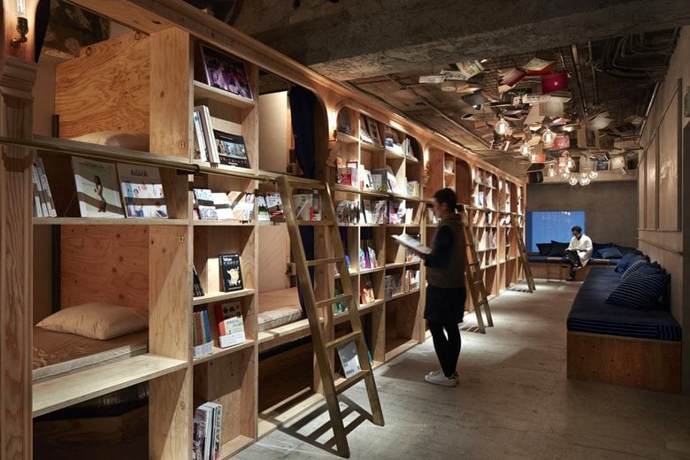 2015年「BOOK AND BED TOKYO」在東京開幕,這間飯店是以「可以過夜的書店」為概念,在時髦的書店裡設置膠囊式床鋪,獨特的想法十分受歡迎,直到2018年已經分別在池袋・淺草・京都・福岡・新宿開設了5家分店!