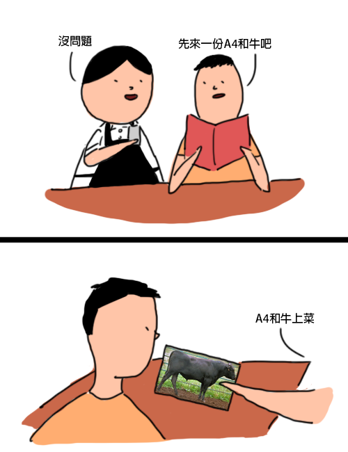吃不起昂貴的A4等級和牛,只能看印在A4上的和牛配白飯QQ