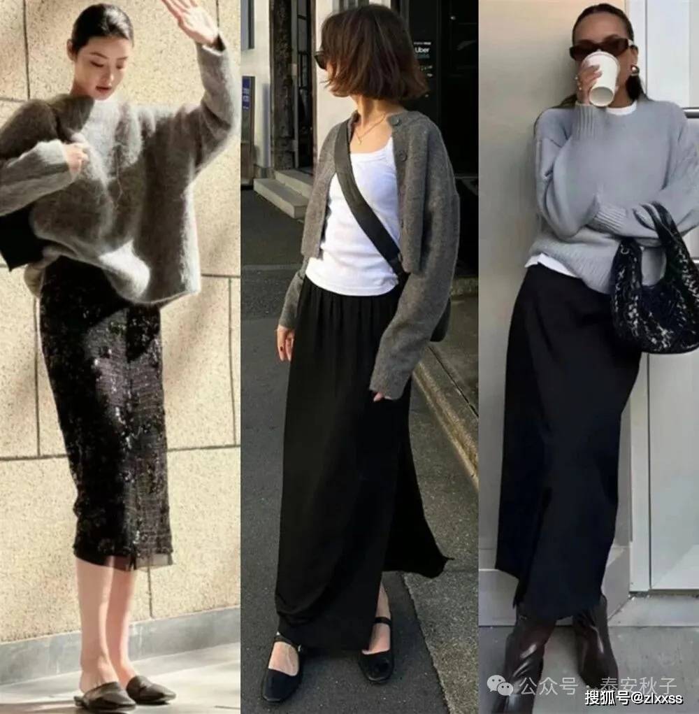 不管是舒適的羊毛衫,還是知性幹練的襯衫,都能和黑裙子搭配,打造出多種時髦造型。