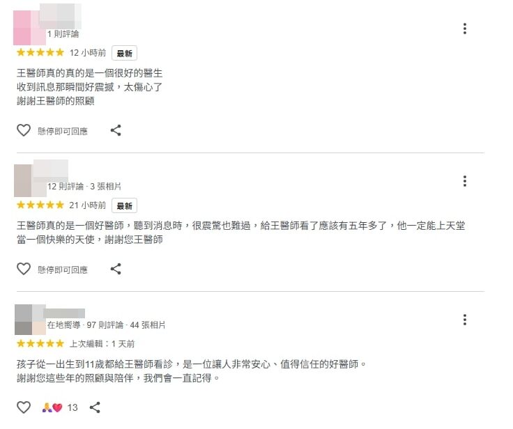 新北名醫「驚傳身亡」!一票民眾不捨:「怎麼會是他....」 Elmo 2026-03-26 檢舉 圖片來源:《ETtoday》網友們紛紛留言悼念:「王醫師真的真的是個很好的醫生,收到訊息好震撼,太傷心了,謝謝王醫師的照顧」、「看了應該有五年多,他一定能上天堂,當一個快樂的天使」、「不敢相信這是真的,孩子從小看到大都是給王醫師看」、「醫德醫術都一流的好醫生,怎麼會這樣」、「希望王醫師一路好走,您的溫暖我們會永遠記得」。影片來源:TVBS NEWS資料來源:《ETtoday》 Advertisements 回首頁 2/2 Advertisements 猜你會喜歡 每個月燒掉百萬!58歲康康認了「暈船酒店妹」 不惜砸錢「幫她圓夢」:想幫她從良 沉迷牛郎敗光遺產!清純星二代「驚傳遭到逮捕」 送別亡夫3年!丁強遺孀「不投靠美國兒女」 獨留台灣「76歲拒健康檢查」原因曝光 編輯精選推薦 More + 千萬起家厝賣掉了!張秀卿認手頭緊「為女兒月花20萬」 她超爭氣「進軍美國」成台灣之光 15歲兒「睡夢中離世」!本土女星「送愛子火化」求做1事 「PO照圓滿了」:媽媽和你永不分開 趕在40歲前閃婚!八點檔女星「宣布嫁給他」 尪驚人身分曝「媒人是柯叔元」 65歲男星獨居暴斃!大咖女星放下恩怨「送前夫最後一程」 昔遭動手6年嘆「死者為大」 別人對你說謝謝!不要說「不客氣」 教你3種「高情商的回應方式」 台灣大咖病逝「享壽83歲」!周遊告別式痛哭「認婚內出軌」:兒子很恨我... 功德圓滿了!台語歌后「悲曝他離世」享壽95歲 淚喊:去當快樂的神仙吧... 台語歌后慟別摯愛!告別式上認「早隱瞞病情」 道歉哭喊:原諒我簽放棄急救 24歲兒失明!于美人爆「他在飯店掃廁所」維生 不盼紅包只求「別再花我的錢」 44歲許維恩罹乳癌!醫示警「3日常用品」易致癌:別碰才能保命 弟成植物人、姊猝逝!玉女歌手「遭前夫設套」騙走娘家房產 「狠斬16年婚姻」近況曝 婚變尪落跑!單親媽「獨扛千萬債養孩」到處躲黑道 「一開口驚艷眾人」熬成台灣歌后 快訊/驚傳嚴重大火「至少50傷」!下令「全國消防動員」 快養不起小孩!本土男星「開計程車、斜槓房仲」 突宣布「離開台灣」:演藝圈沒工作 滿街都在穿!醫點名「這款鞋」少穿為妙:恐讓脊椎變形 教你「1招看腿型」秒挑到好鞋 男子吃自助餐「浪費食物」被罰2400元,不吵不鬧付錢離開,老闆慌了:快追回來 空窗多年!68歲陳美鳳突羞認「身邊有個他」 40年前就認識「遭男方母親拆散」 85歲失智父身亡!林葉亭突宣布「皈依佛門」 遇大師「開示一番話」忍不住淚崩 45歲本土劇男星「驚曝已婚16年」! 首吐婚姻狀況「愛女是名校學霸」 晚年隱居台東!68歲名主持失蹤「車內身亡」 伴侶悲曝「死前做1事」:還掛念著我 本土劇女星生了!7年前凍卵「終於來到我身邊」 歌手尪嗨喊:生個足球隊 22歲愛女病逝!資深男星「走不出喪女痛」留白長髮現身 掛骨灰項鍊「代女做1事」惹淚 最新/3度中風送醫!資深男星爆離婚「斷50年髮妻」 「砸1億淨身出戶」家族爆紛爭 最新/賈靜雯深夜慟曝「她已離世」 淚PO合照喊:真的好愛你... 86歲蕭萬長「逆轉肺癌」!秘訣竟是「靠1碗養生湯」每周喝4次:快速清毒素