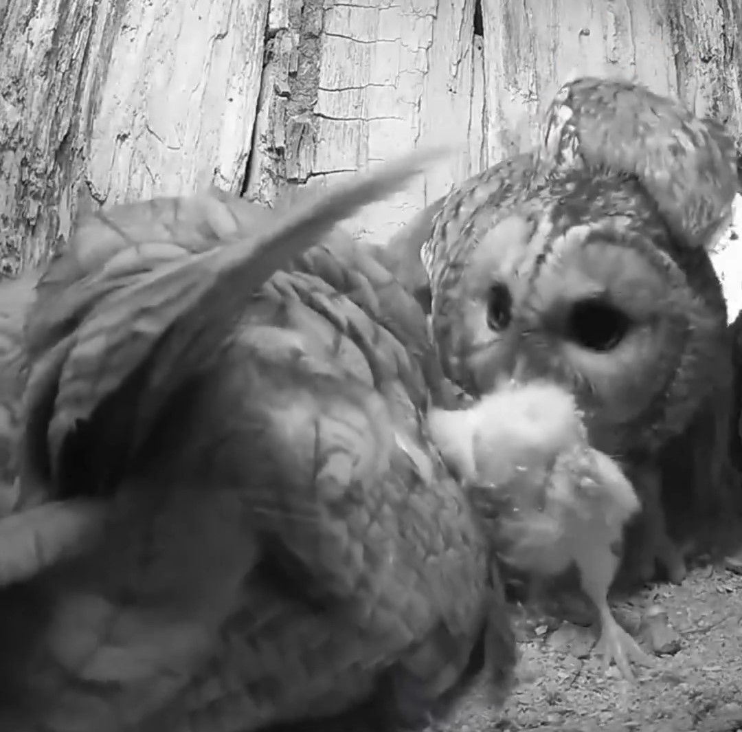 開心當媽的Luna甚至母愛大爆發,對孩子們佔有欲特別強,每當Bomber帶著食物回來或試圖與寶寶們相處一下,Luna都會把老公推開XD據說後續2隻小貓頭鷹離巢後,這對貓頭鷹夫婦又繼續幫忙養育其他孤兒幼崽,總共養大了6隻小貓頭鷹呢!