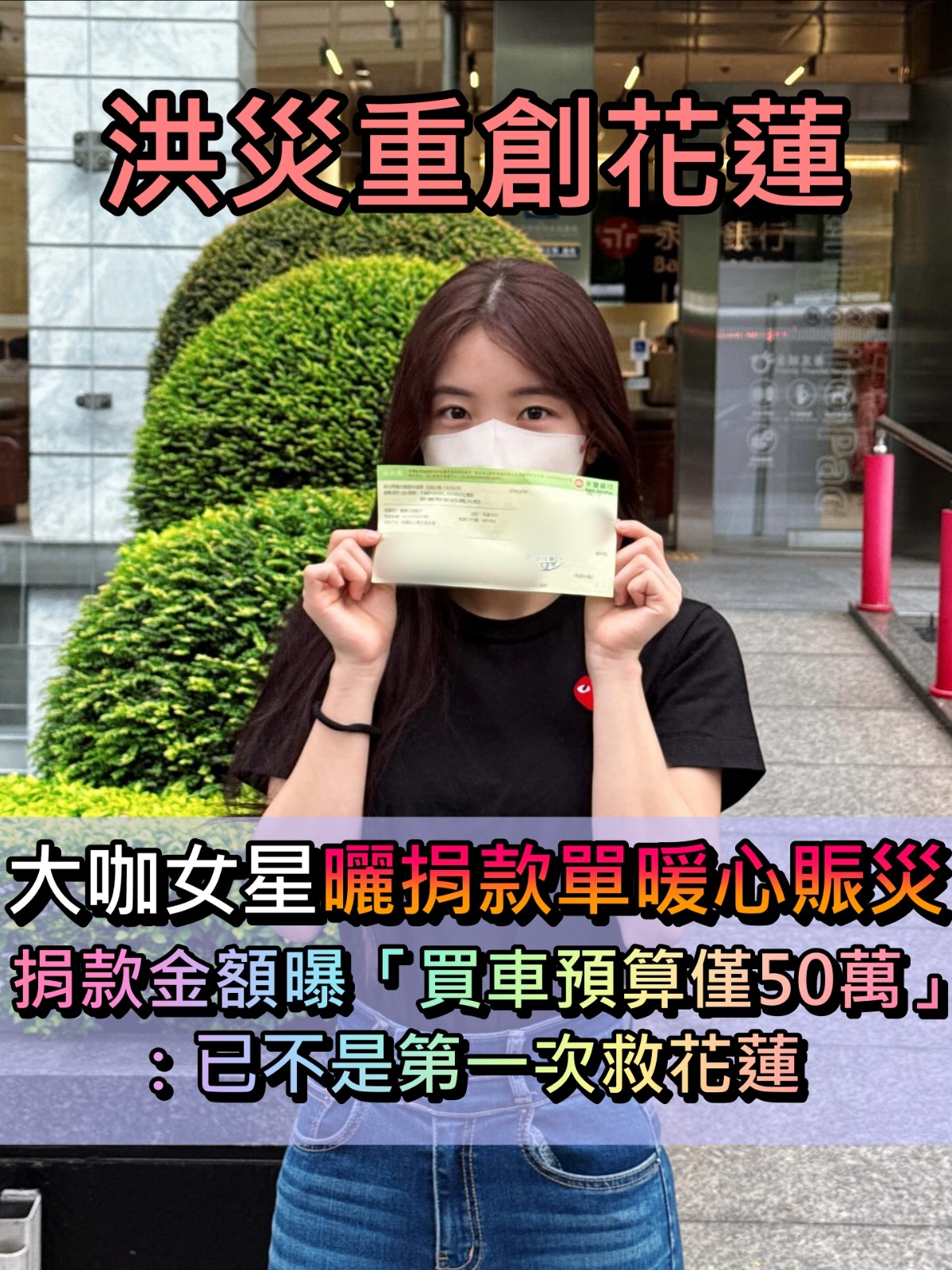 洪災重創花蓮!大咖女星「曬捐款單暖心賑災」 捐款金額曝「買車預算僅50萬」:已不是第一次救花蓮