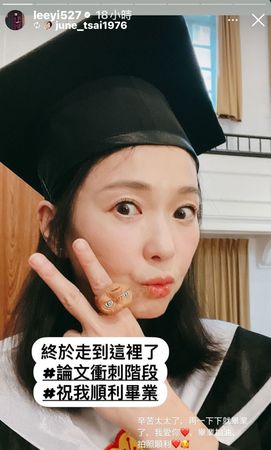 而六月分享畢業照時,清新亮麗的模樣宛如少女。經過一場大病後的她更顯清瘦,身體年齡竟回到30歲,自嘲這是「50歲變30歲」的小確幸。李易那時候也在社群平台上為愛妻加油打氣,寫下「辛苦太太了,再一下下就畢業了,我愛你」,獲得六月溫馨回應:「感謝李先生愛的支持。」