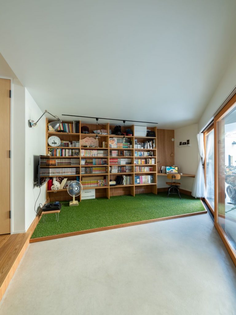 而且一整面書牆及草皮質感的閱讀區,更是營造出一股讓人好想在其中投入書海的氛圍呢~~