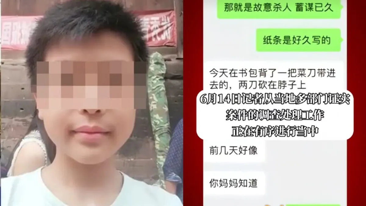 根據《風傳媒》報導,四川省廣安市一所學校發生駭人聽聞的校園血案,一位年僅14歲的優秀學生,竟在眾多師生面前,遭到同班同學持刀殺害,當場失去性命。更令人不寒而慄的是,兇手疑似早有預謀,甚至在案發前一個月就曾透過紙條威脅受害者。