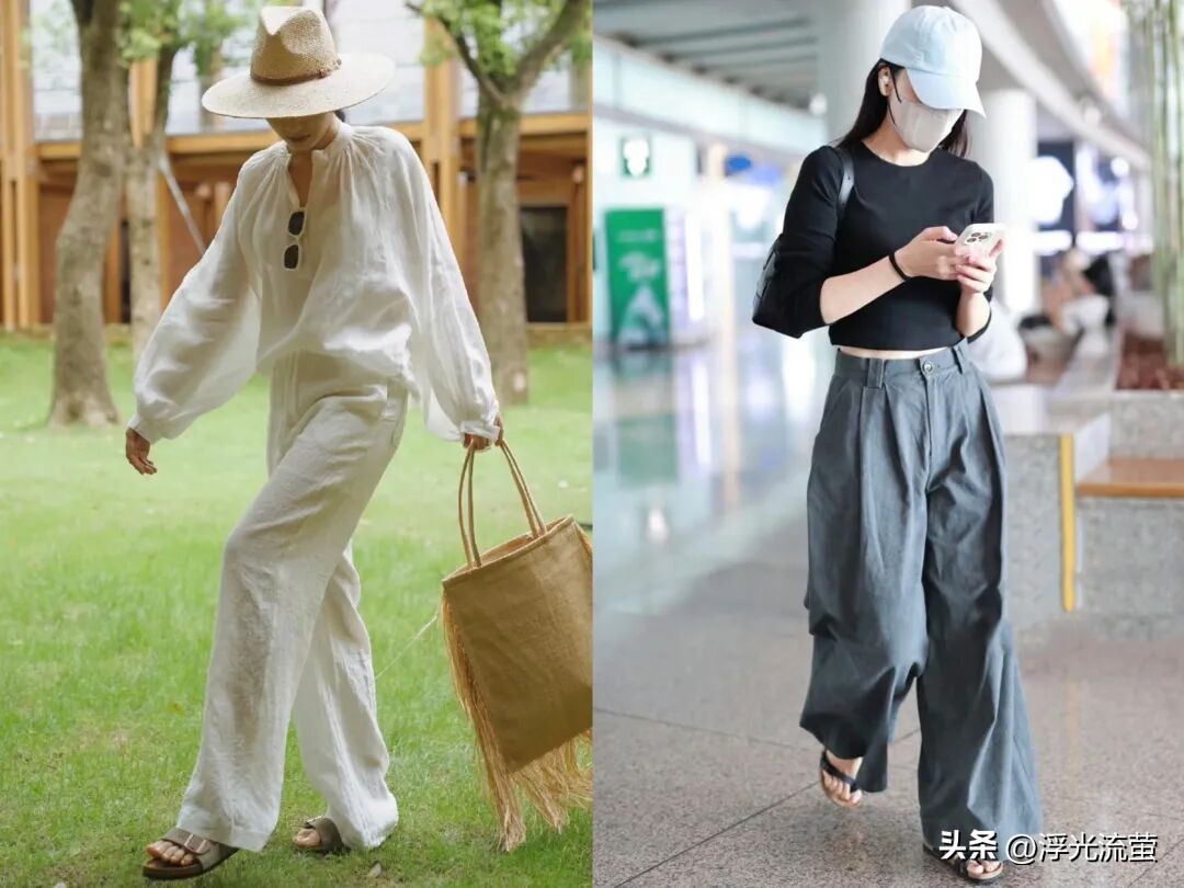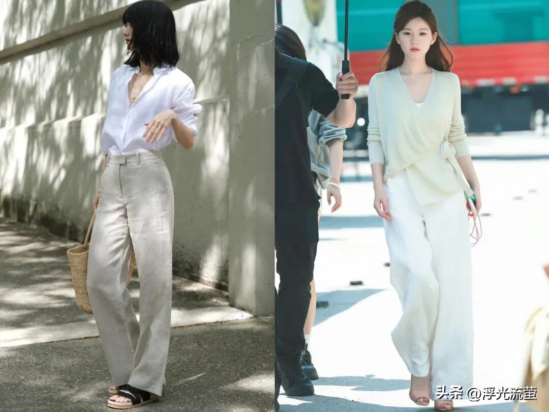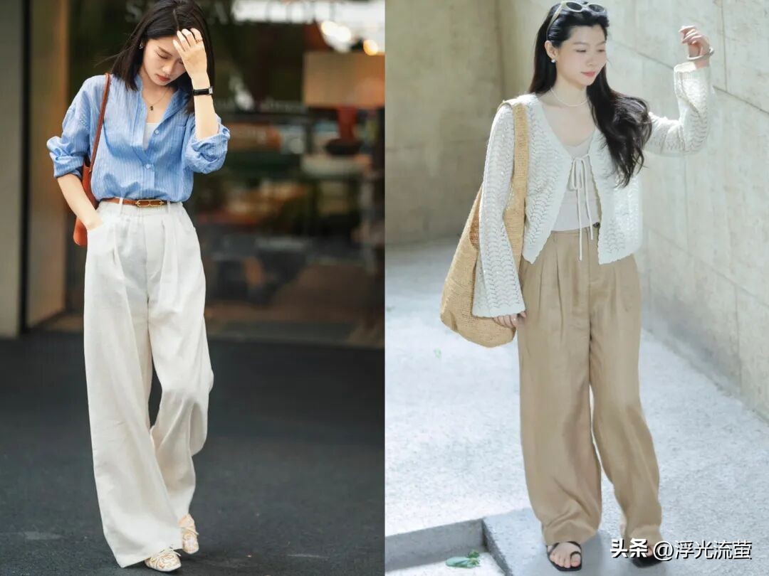 像今年春天的時候,我就發現「亞麻寬褲」特別火,也很符合我們穿衣需求。