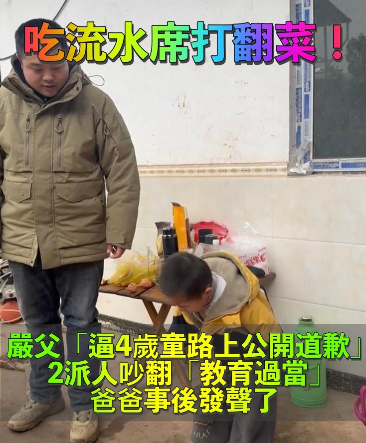 吃宴席打翻飯菜!4歲男童「被逼當眾道歉」2派網戰翻 事後爸爸「揭露背後苦心」作法被盛讚