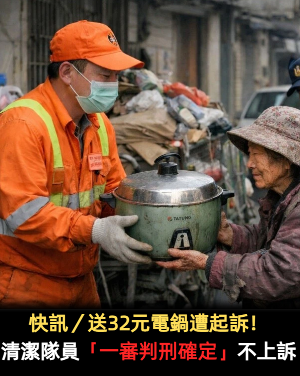 快訊/送32元電鍋遭起訴!清潔隊員「一審判刑確定」不上訴