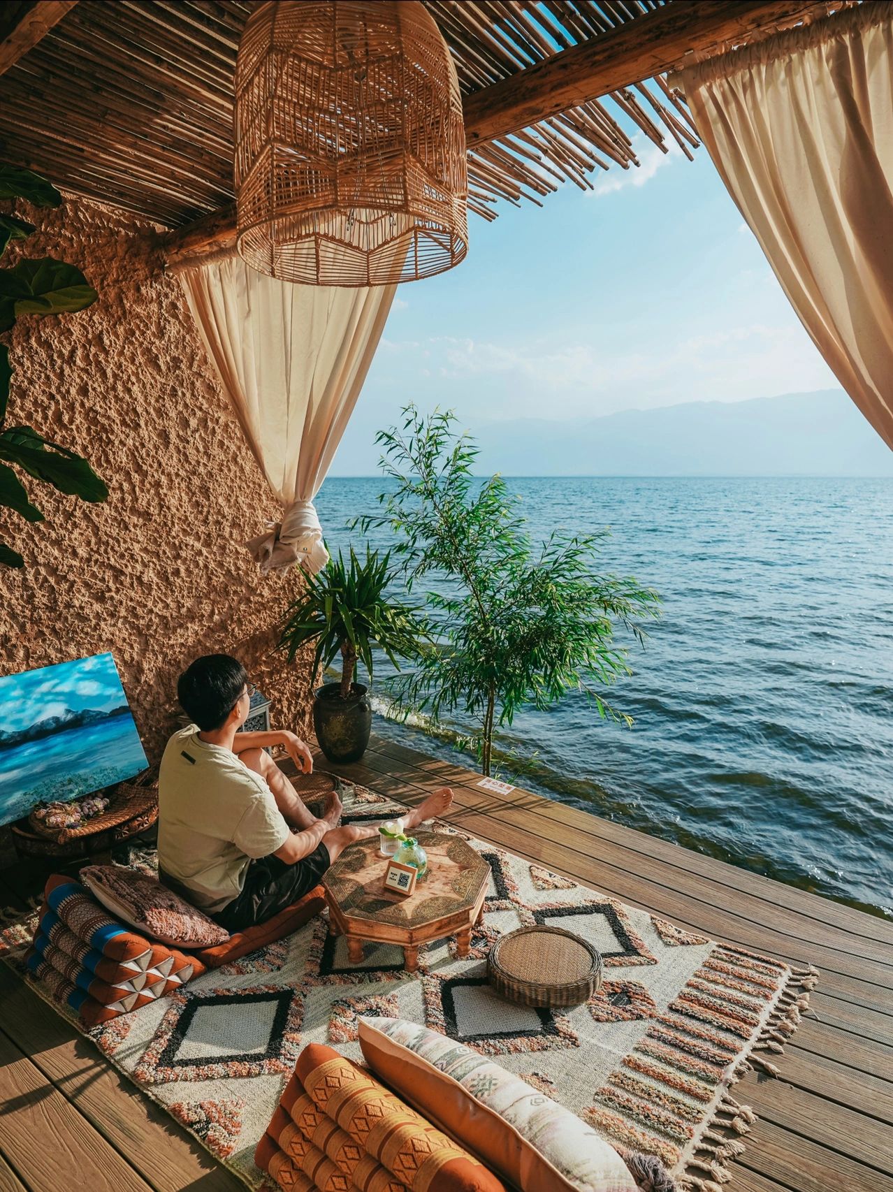 位在中國大理的這家「大理·寧芙海宿」非常有名,地點位在雙廊民俗文化街,這裡不僅可以欣賞蒼山洱海,整個民宿更像是被海水包圍的秘密花園,躺在屋外的露台邊,可以點一杯海妖咖啡的特條,享受日落的暖陽和洱海的波光,完全就像是一種極致的浪漫~