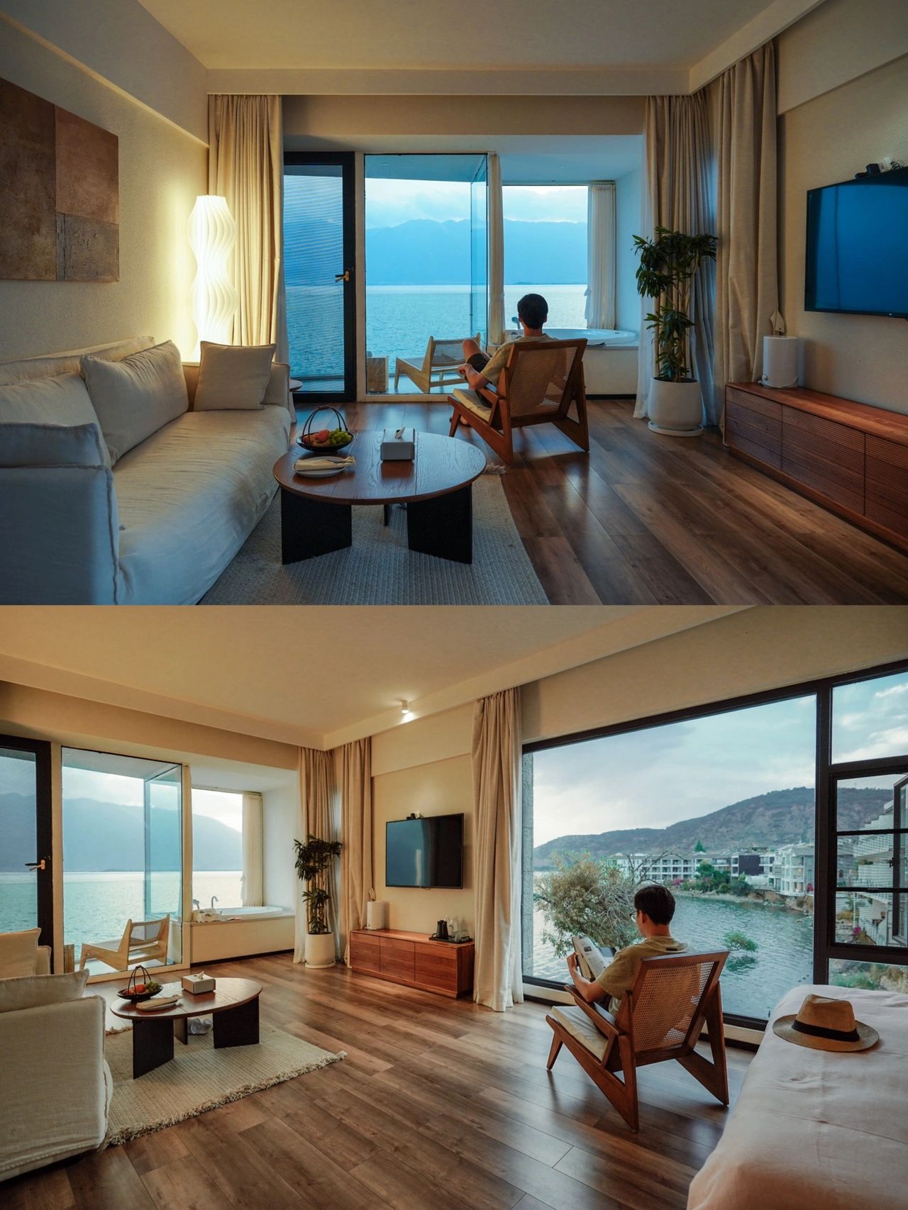 房間的落地窗更是讓人讚嘆,大大的透明採光窗將兩側的美景盡收眼底,晚上看著風捲雲舒,伴著海浪聲入睡,光是看到照片都覺得好滿足啊~