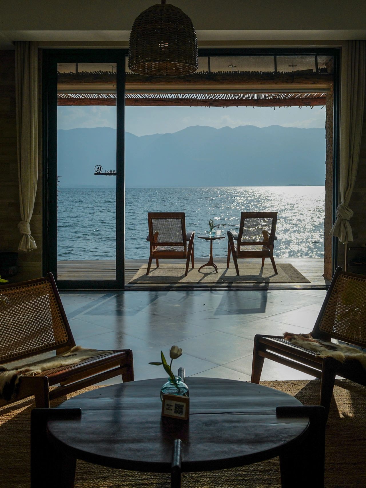 除了屋內木質調的裝潢和寬闊的窗景,讓人感到非常舒適以外,走到後花園還有綠植碎石滿佈,搭配沿海的湛藍大海,陽光照耀下波光粼粼的閃耀著,坐在花園一隅,享受著山水一色,瞬間有主來到東南亞渡假的感覺~